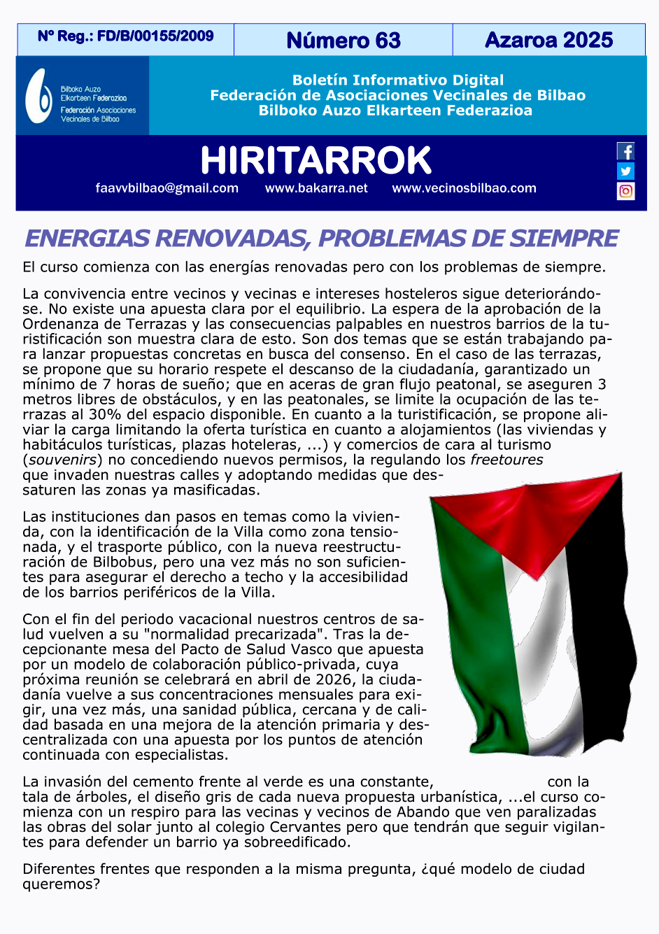 Boletín informativo digital de la Federación de AAVV de Bilbao.