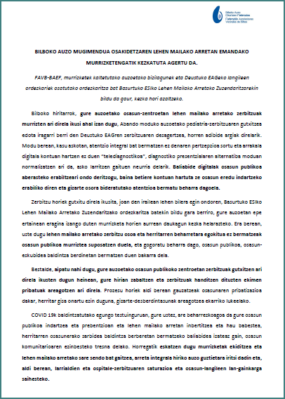 La Federación está preocupada por la situación de la Atención Primaria de la salud en Bilbao.
