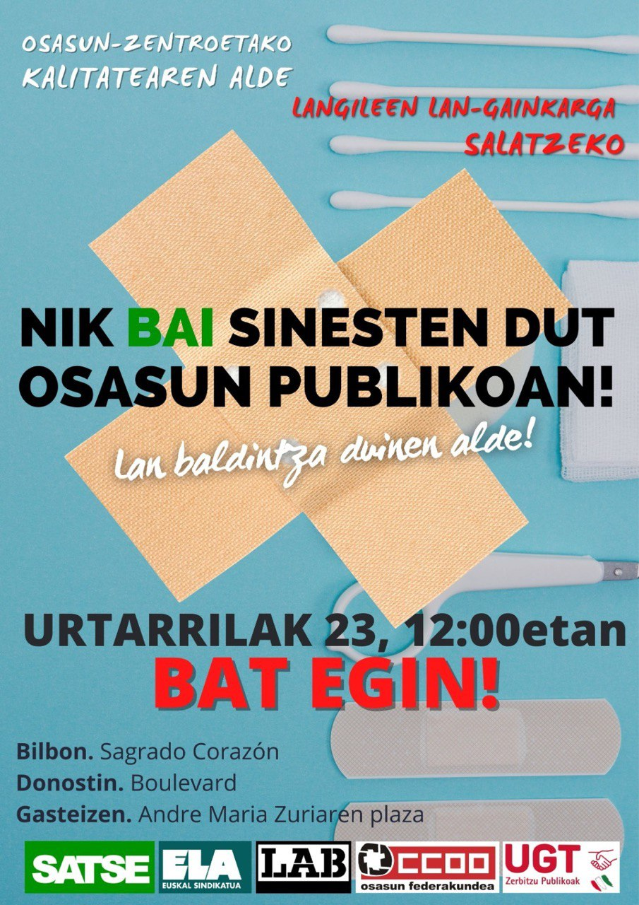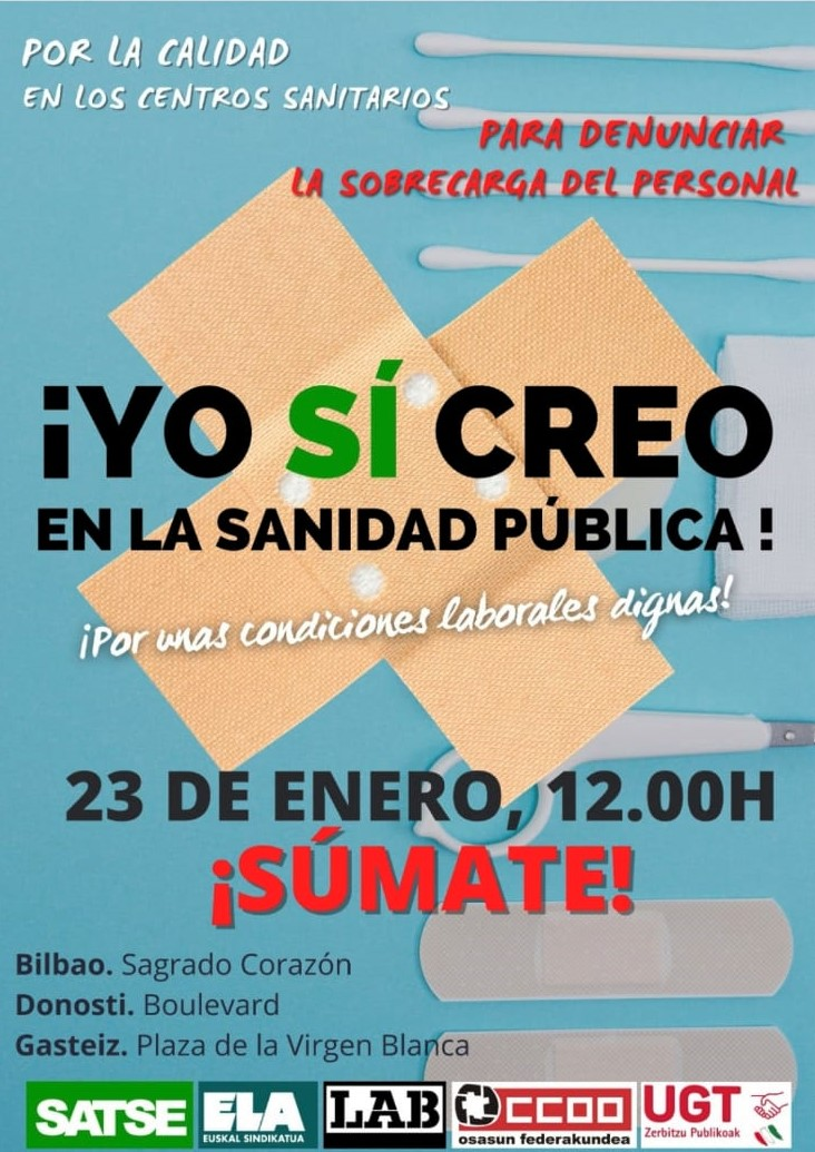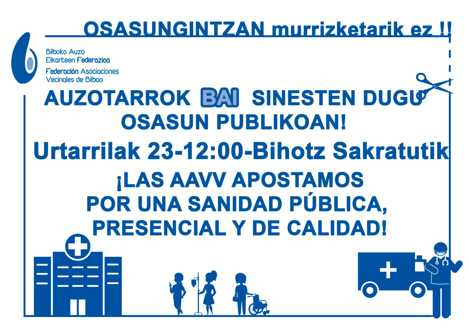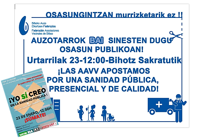 LA FEDERACIÓN DE ASOCIACIONES VECINALES DE BILBAO LLAMA A PARTICIPAR EN LA MANIFESTACIÓN SINDICAL DEL PRÓXIMO DOMINGO 23 ENERO EN DEFENSA DE LA SANIDAD PÚBLICA