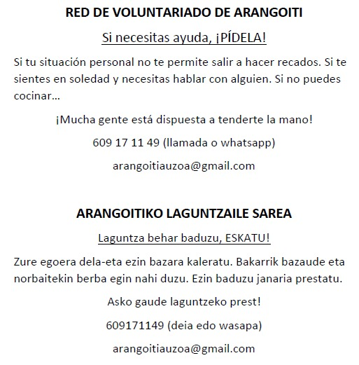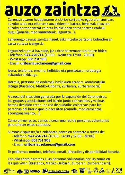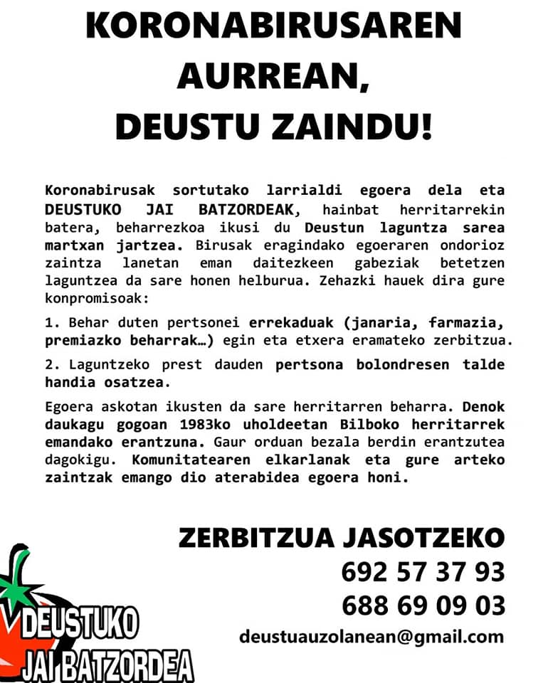 | 15/03/2020 | Uribarri contactos | Deusto euskaraz | Alde Zaharra en castellano | San Ignacio euskaraz |
